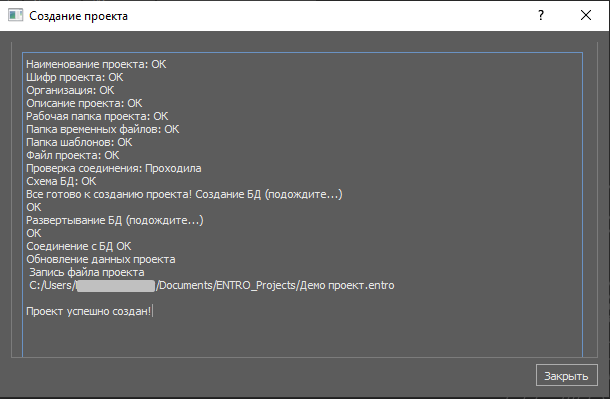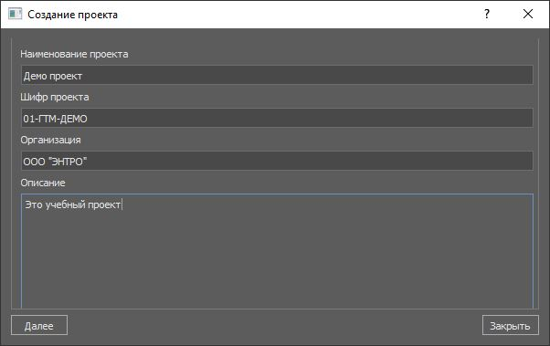 На последней вкладке отобразится ход создания базы данных нового проекта ГТМ. В случае успеха проект автоматически загрузится в приложении и можно приступать к работе.